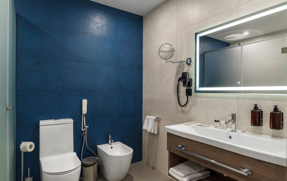 В номере: вешалка, диван, зеркало, кресло, кровать двуспальная, прикроватные тумбочки, стол, шкаф, мини-холодильник, сейф, телевизор ЖК, телефон, чайный набор посуды, электрочайник