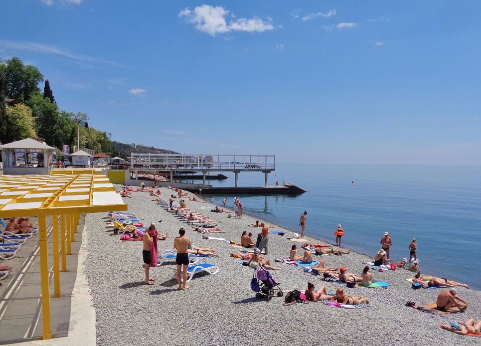 - оборудован душевыми, кабинками для переодевания, кафе, лежаками, навесами, спасательным постом, туалетом